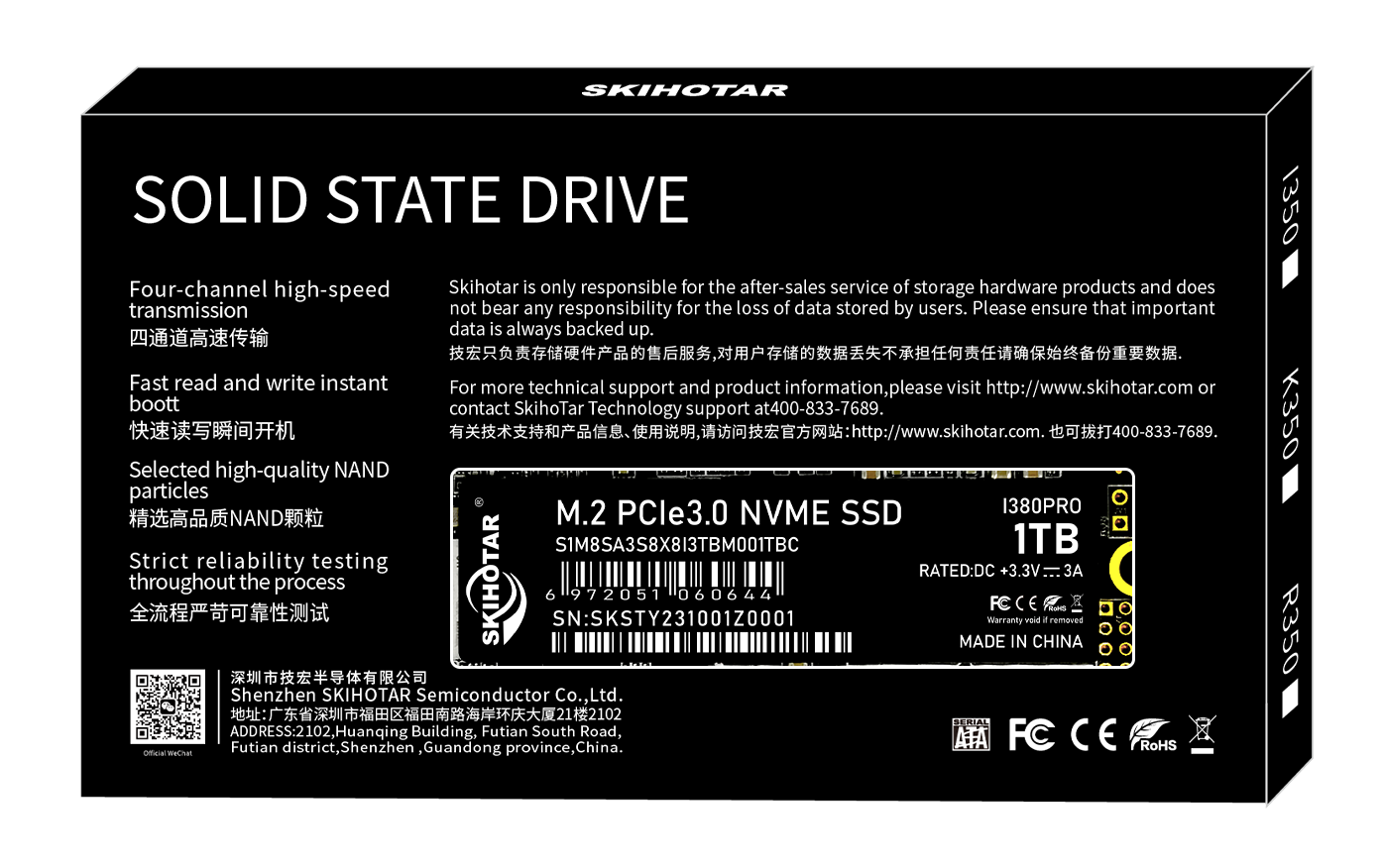 产品尺寸: PCIe 3.0 NVMe(22x80x3.3MM)