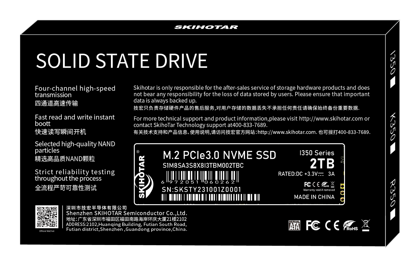 产品尺寸: PCIe 3.0 NVMe(22x80x3.3MM)