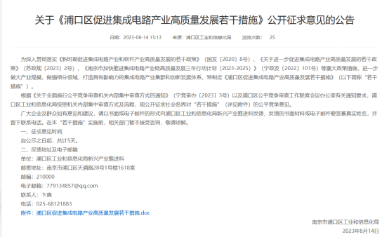 8月14日,南京市浦口区人民政府发布关于《浦口区促进集成电路产业高质量发展若干措施》(以下简称《若干措施》)公开征求意见的公告。以下是《若干措施》具体内容: